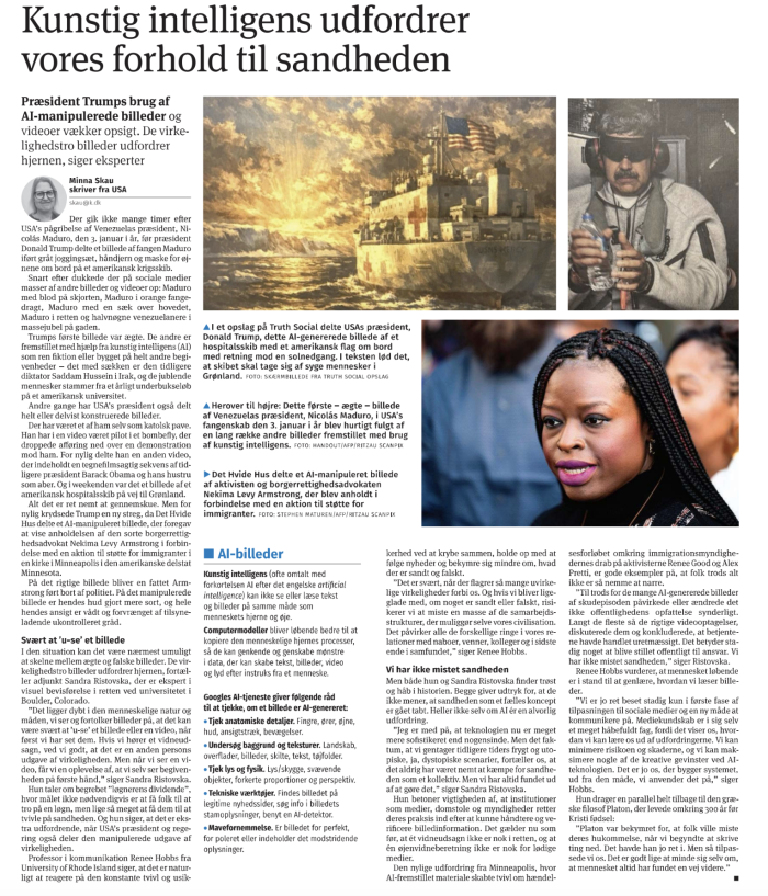 “Strictly speaking, we are still only in the first phase of adapting to social media and a new way of communicating. Media literacy is, in itself, a very hopeful field, because it shows us how we can learn our way out of the challenges. We can minimize risk and harm, and we can maximize some of the creative gains of AI technology. It is us who build the system, based on how we use it,” says Hobbs.