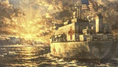 In a post on Truth Social, the President of the United States, Donald Trump, shared this AI-generated image of a hospital ship flying an American flag, heading toward a sunset. The accompanying text said that the ship is to care for sick people in Greenland. Photo: Screenshot from a Truth Social post.