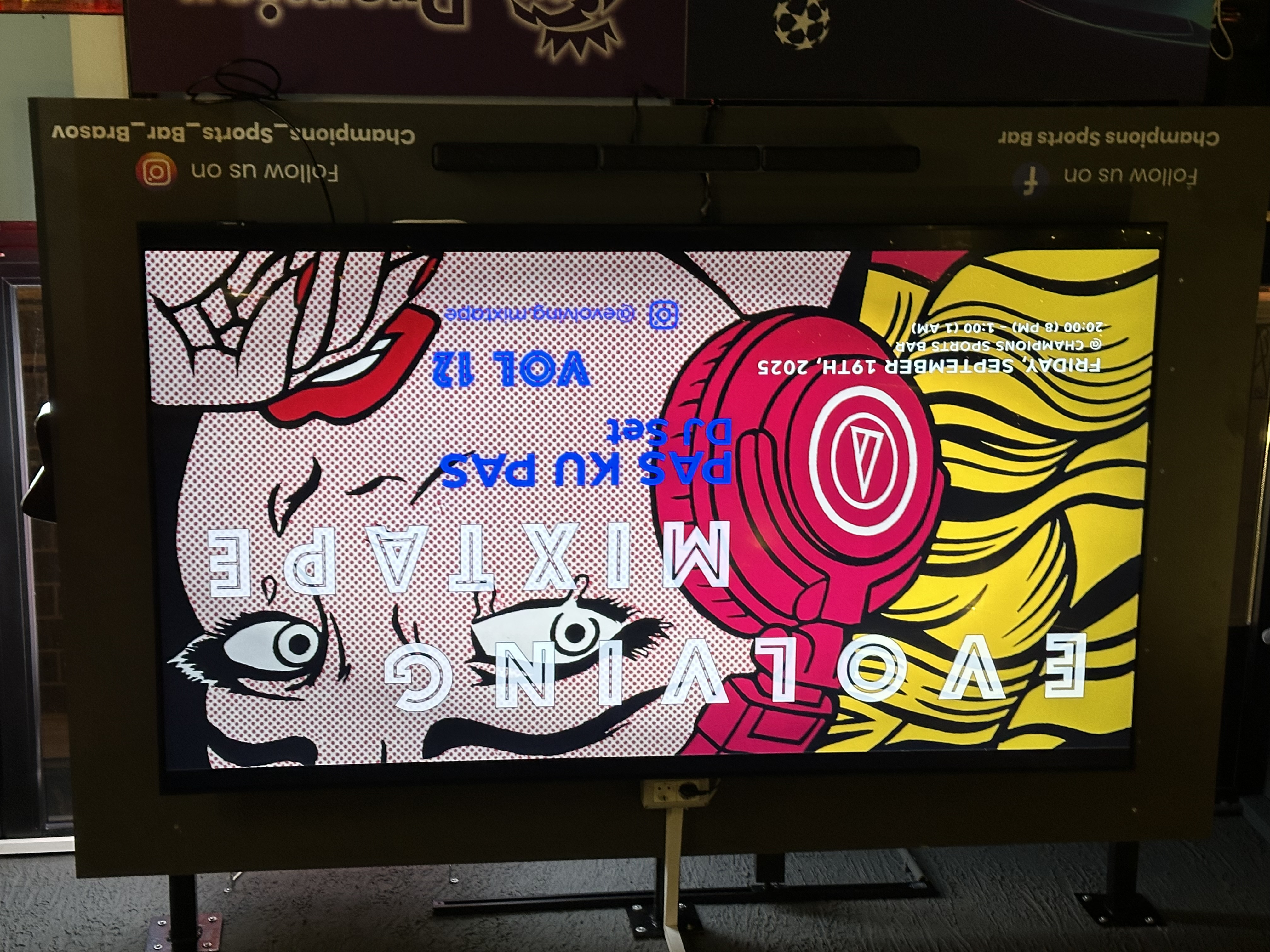 vid Lynch or Hayao Miyazaki films looping silently on various TV screens, people look at each other. They chat and have conversations. As society is characterized by social isolation and loneliness, even in Romania, Evolving Mixtape brings people together in novel ways. We have lively conversations about upcoming concerts and festivals, exposing each other to different artists in both English and Romanian or whatever language a group of tourists happen to be speaking that evening. At times there is even dancing. We hosted a lively Halloween party; some folks dressed up in costumes in a country where people typically don’t partake in this ritual. We ensure the event is open to anybody, and we are one of the few openly LGBTQ friendly spaces in this conservative city, where queer couples still don’t feel comfortable holding hands in public. Here, they make playlists of their favorite artists.