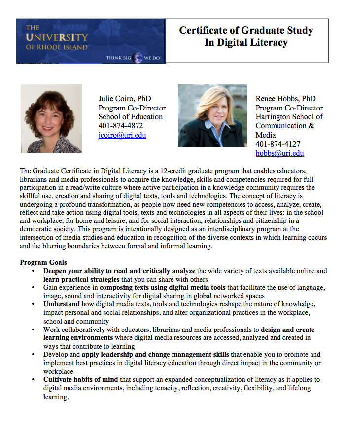 Renee Hobbs introduces the concept of digital literacy, the role and introduces the goals of the Summer Institute in Digital Literacy.