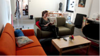 All units have an open living space and a private bathroom. The mini-loft features a snack area with a small fridge and space for a microwave, a bed, dresser, and table and chair. The studio loft features more space, adds a two-burner cooktop to the kitchen, and has either a double or twin bed. The double loft is suitable for two to share and adds a full kitchen with dishwasher, a furnished dining area and lounge area and double bed (or two twins). Also, some of the double lofts can be combined with an adjacent mini-loft. Finally the two-bedroom loft is comprised of 2 single bedrooms sharing a kitchen, dining area and bathroom.