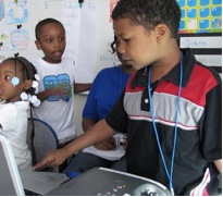 You can see some examples of student work here. The 2010 program enrolled 85 children aged 5 - 15 for one month, July 5 - 31, 2010, thanks to a grant from the Wyncote Foundation. More than 35 children are attending our all-day program this summer-- with themes including "All About Pop (Music)," "Monster Media," "Video Game Design" and "Understanding Celebrity Culture." Fifty children attend am AM program in academic remediation to work on writing, reading and math and enroll in our PM program. There, children get to learn about mass media and popular culture with activities that involve lots of teamwork and collaboration. Children develop effective communication skills and get plenty of hands-on work with digital media-- especially our beloved Flip video cameras!Â