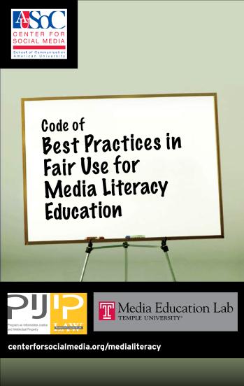 4. The Five Principles. Examine the Code of Best Practices in Fair Use for Media Literacy Education to learn how educators use it as a tool in making decisions about the use of copyrighted materials to promote critical thinking and communication skills.